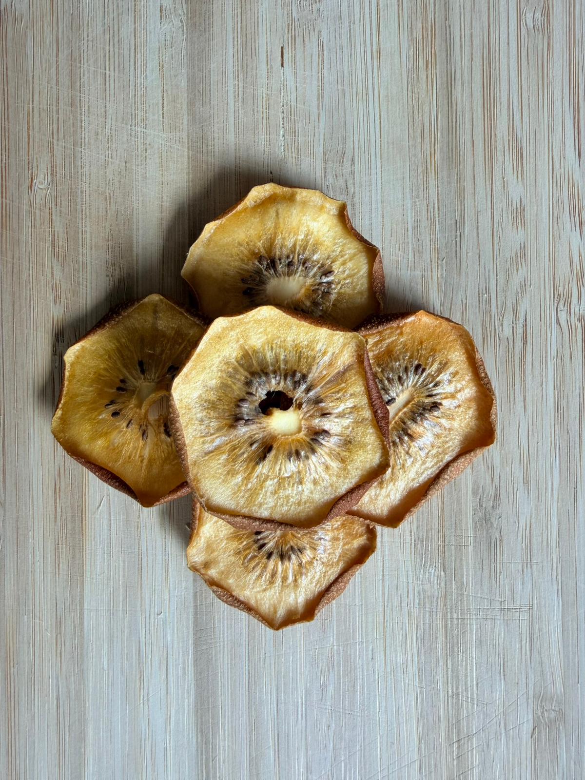 Kiwis are naturally rich in vitamin C, antioxidants, and dietary fiber, supporting immunity, digestion, and overall wellness. Our gentle dehydration process locks in all these benefits without adding sugar, artificial colors, flavors, or preservatives—just pure, real fruit.